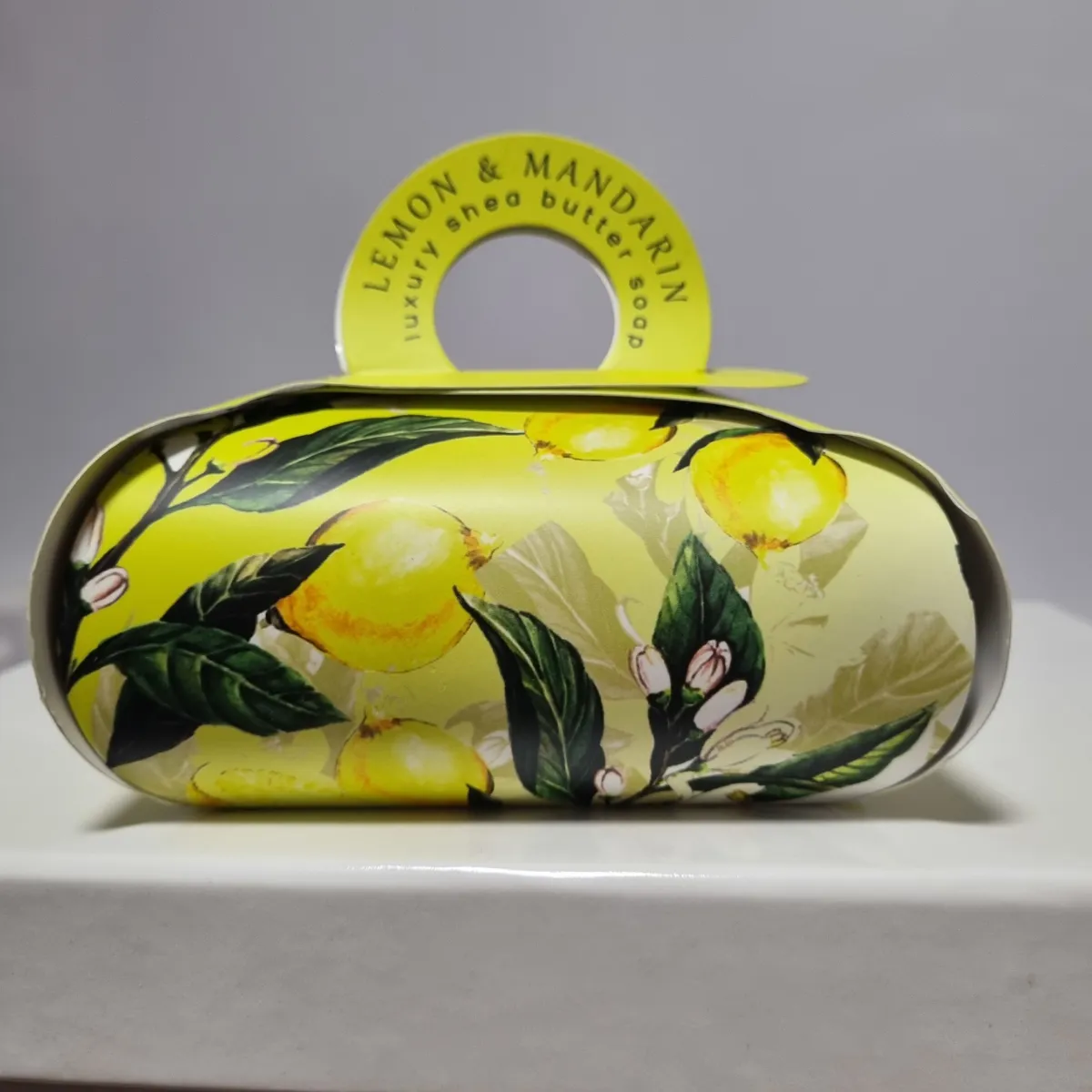 Experience luxury self-care with this Lemon and Mandarin Shea Butter Gift Soap from the English Soap Company. Generously fragranced and expertly crafted from pure vegetable oils and enriched with shea butter, this vegan-friendly soap produces a rich, silky lather that scents and nourishes your skin. Presented in fully recyclable packaging with no plastic waste and adorned with a charming design., these eco-friendly soaps are the perfect gift or indulgent treat for yourself.